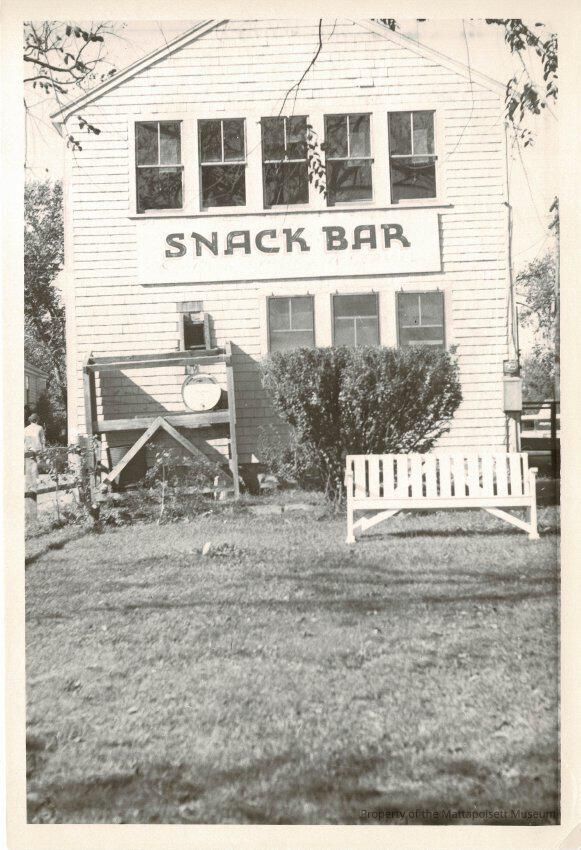 B&W photograph of the store/snack bar run by Mrs. L. LeBaron on Water Street.Collection