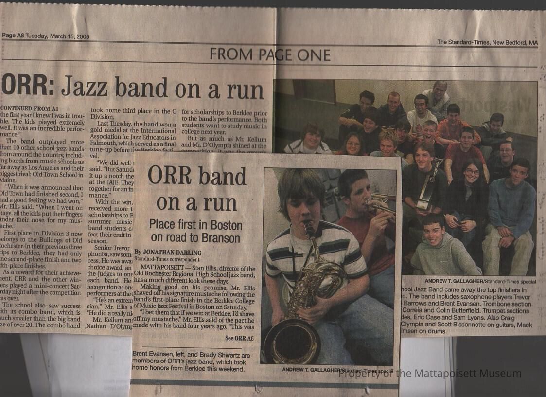 Standard-Times article "ORR: Jazz band on a run" Place first in Boston on road to Branson.Collection