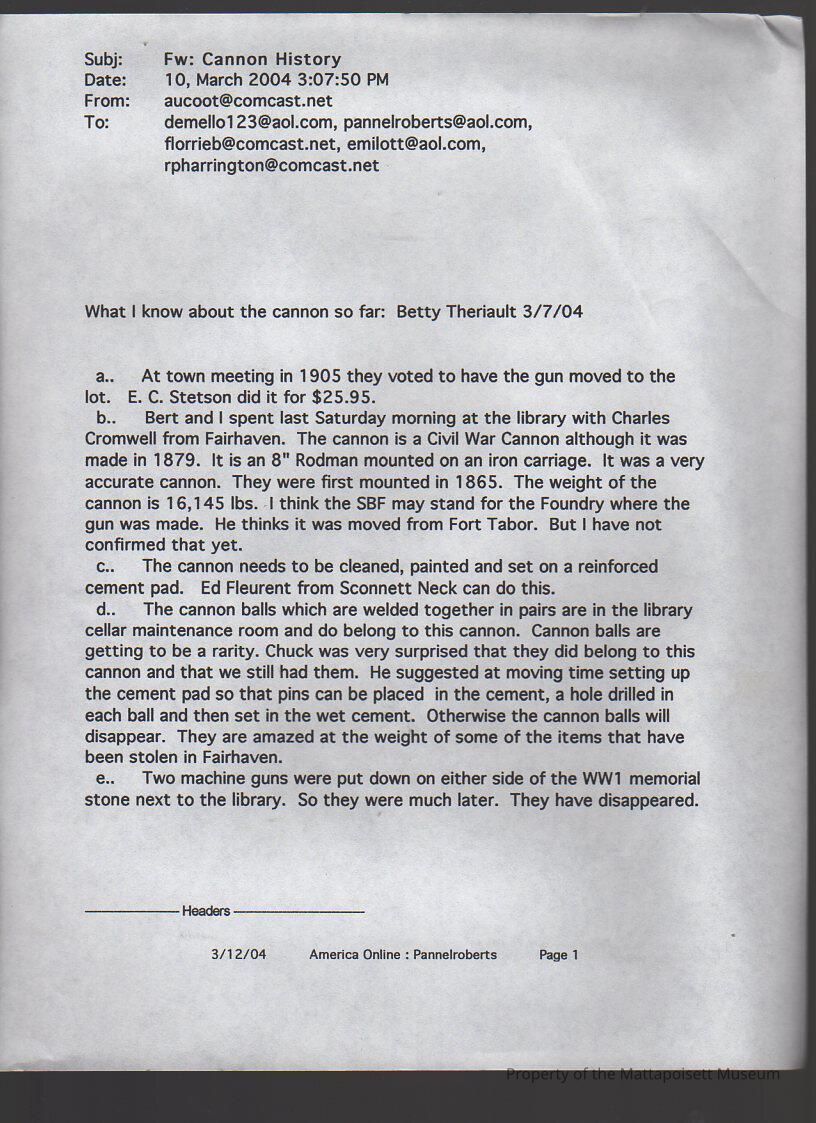 Civil wars, CannonsArchive Details