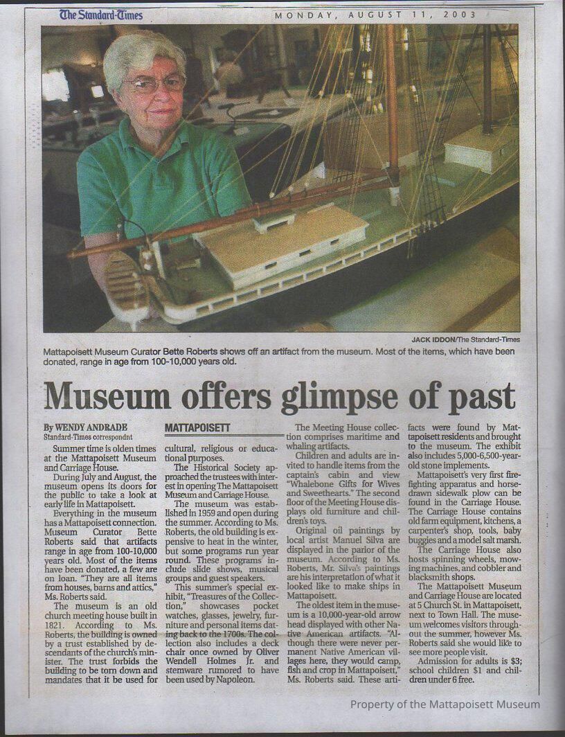 Standard-Times article "Museum offers glimpse of past" Mattapoisett Historical Society Museum & Carriage House.Collection