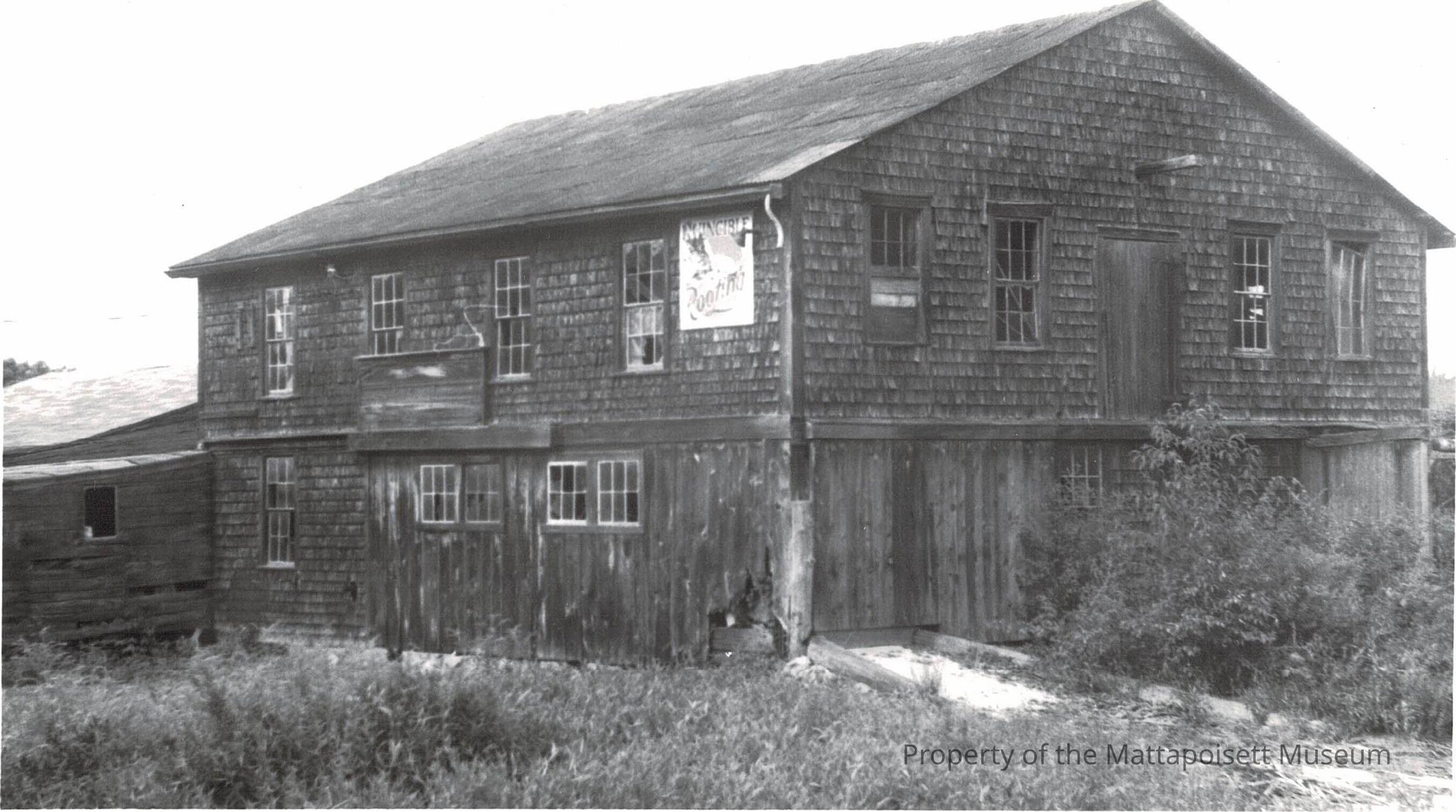 B&W photograph of Stetson's Mill and sawdust shed on North Street, c. 1977.Collection