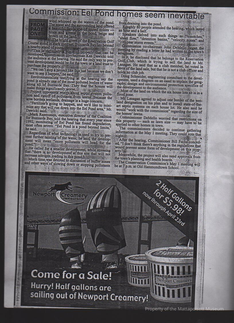 Newspaper article "Commission: Eel Pond homes seem inevitable", development of area near Eel Pond.Collection