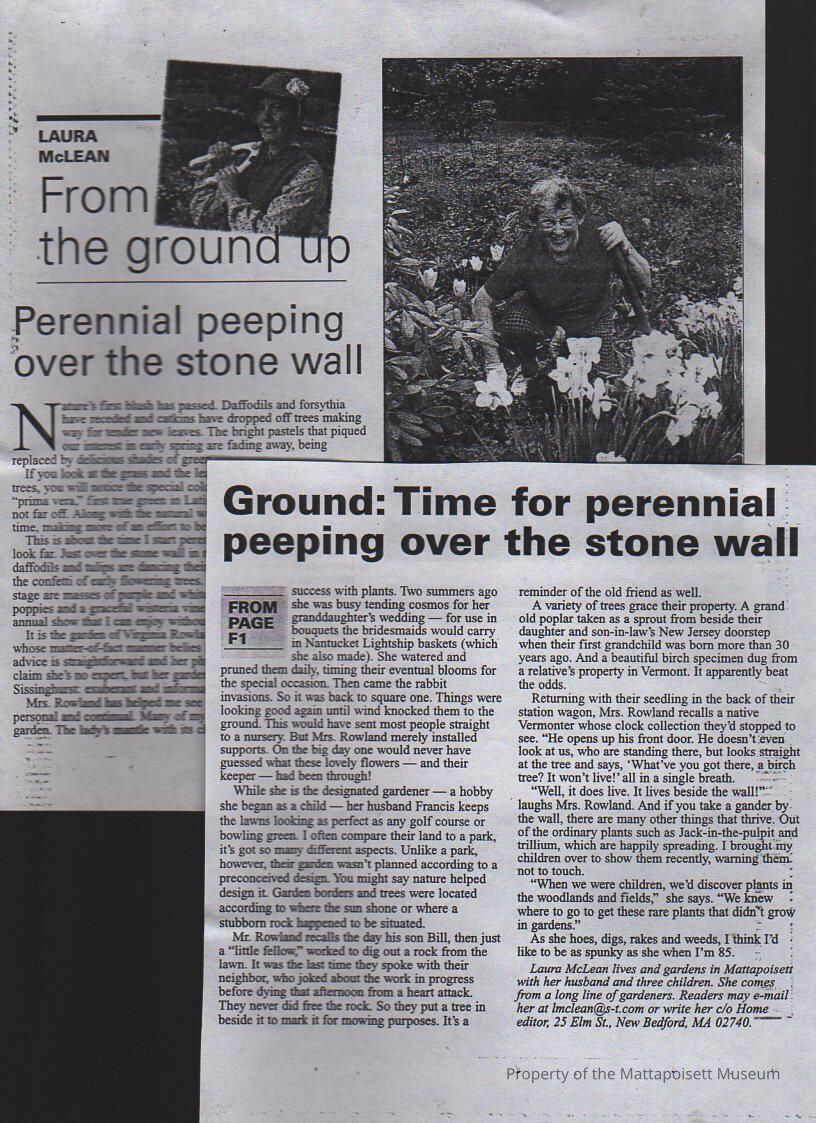 Newspaper article "From the ground up" perennial peeping over the stone wall.Collection