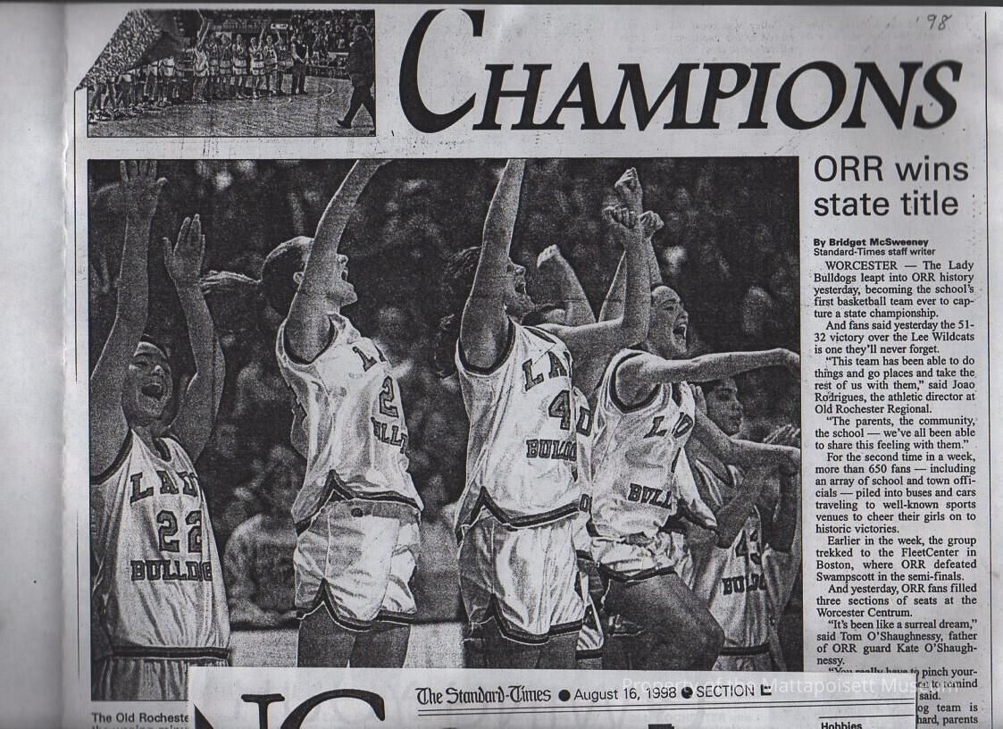 Standard-Times photocopy of article "Champions: ORR wins state title". Lady Bulldogs, women's basketball.Collection