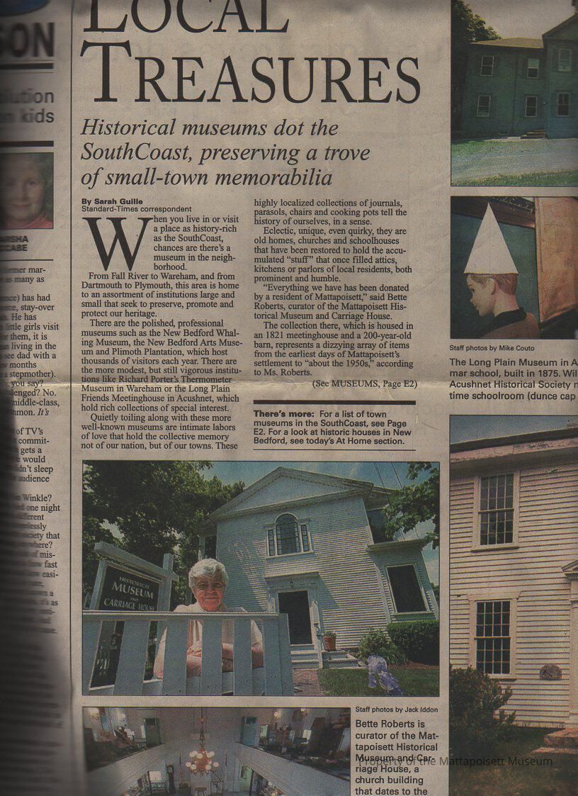 Standard-Times article "Local Treasures" Historical museums dot the SouthCoast, preserving a trove of small-town memorabilia.Collection
