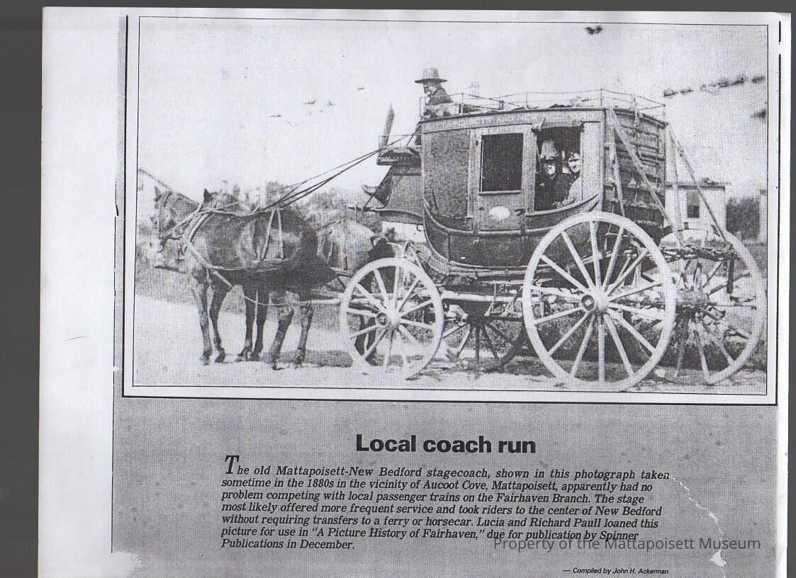 Newspaper photocopy of picture "Local coach run" Mattapoisett-New Bedford stagecoach.Collection