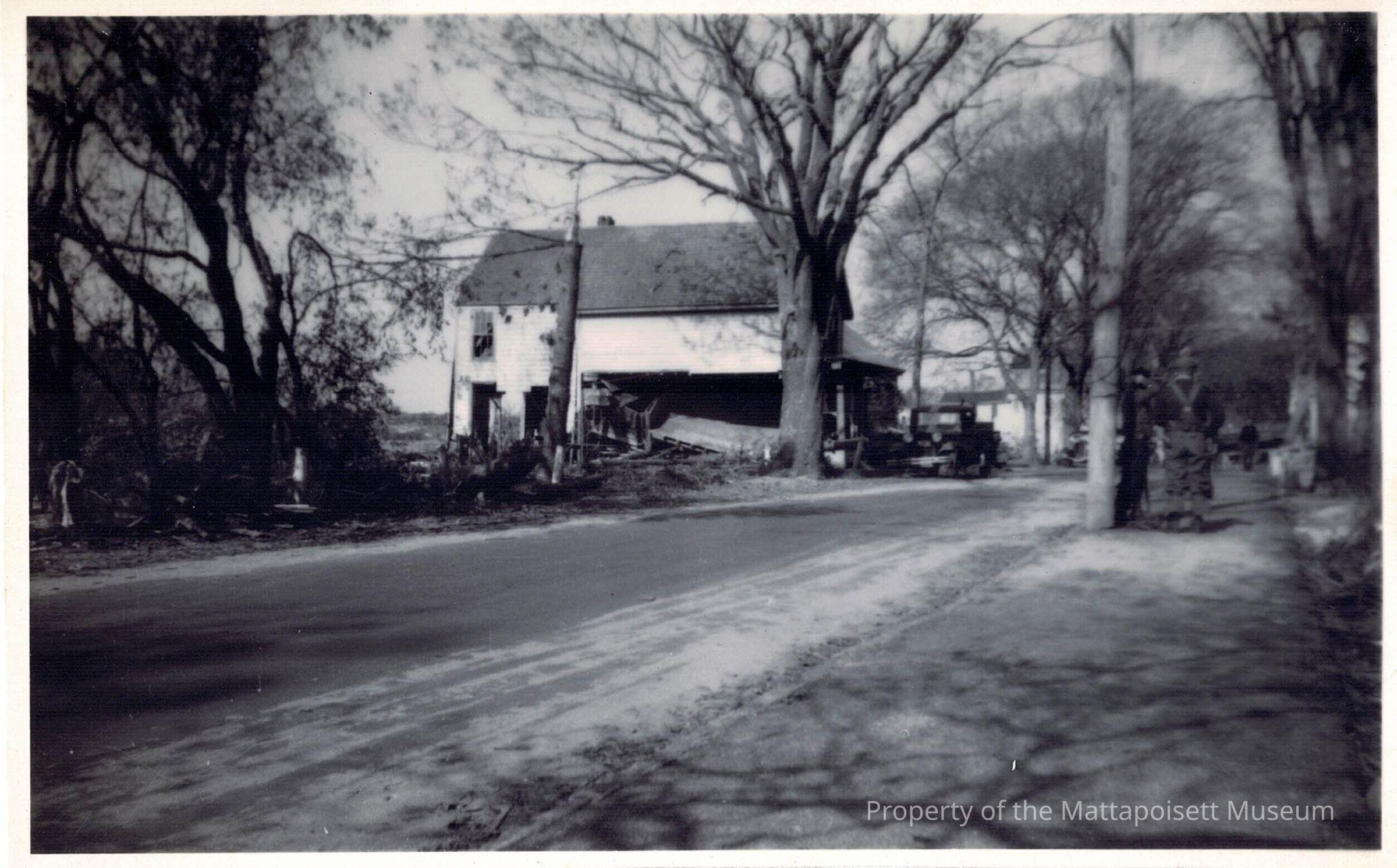 A small B&W photo showing the aftermath of the 1938 hurricane in Mattapoisett.Collection