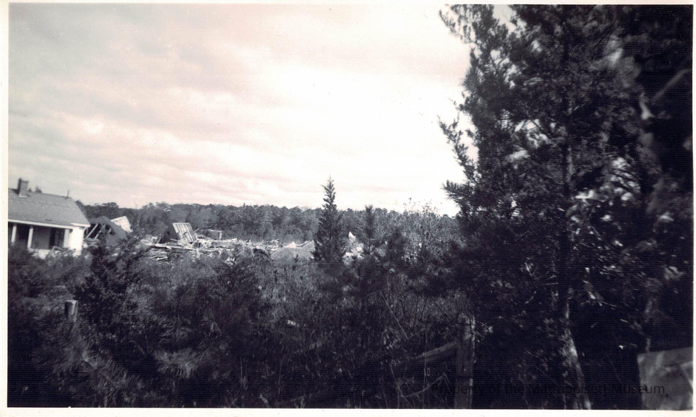 A small B&W photo showing the aftermath of the 1938 hurricane in Mattapoisett.Collection