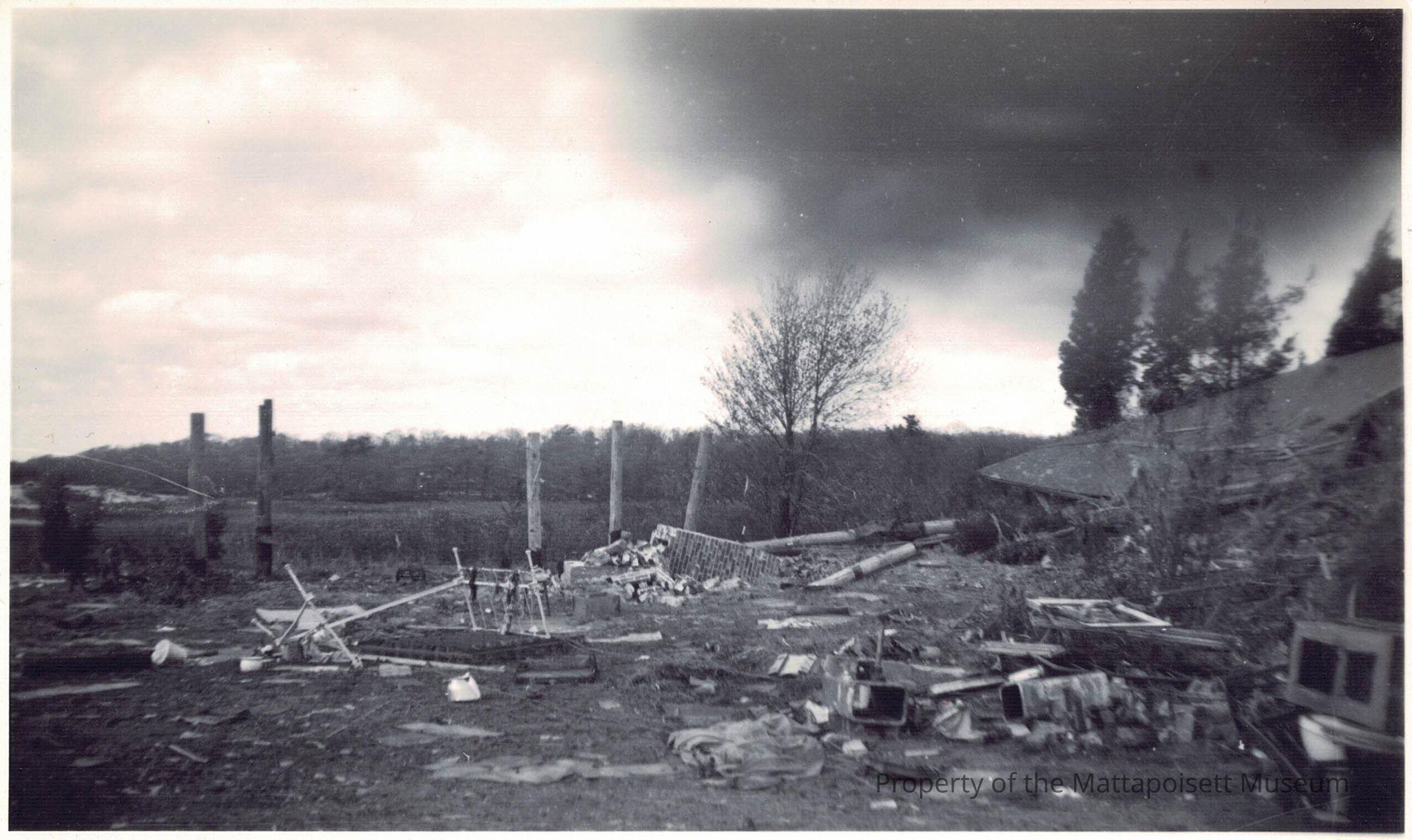 A small B&W photo showing the aftermath of the 1938 hurricane in Mattapoisett.Collection