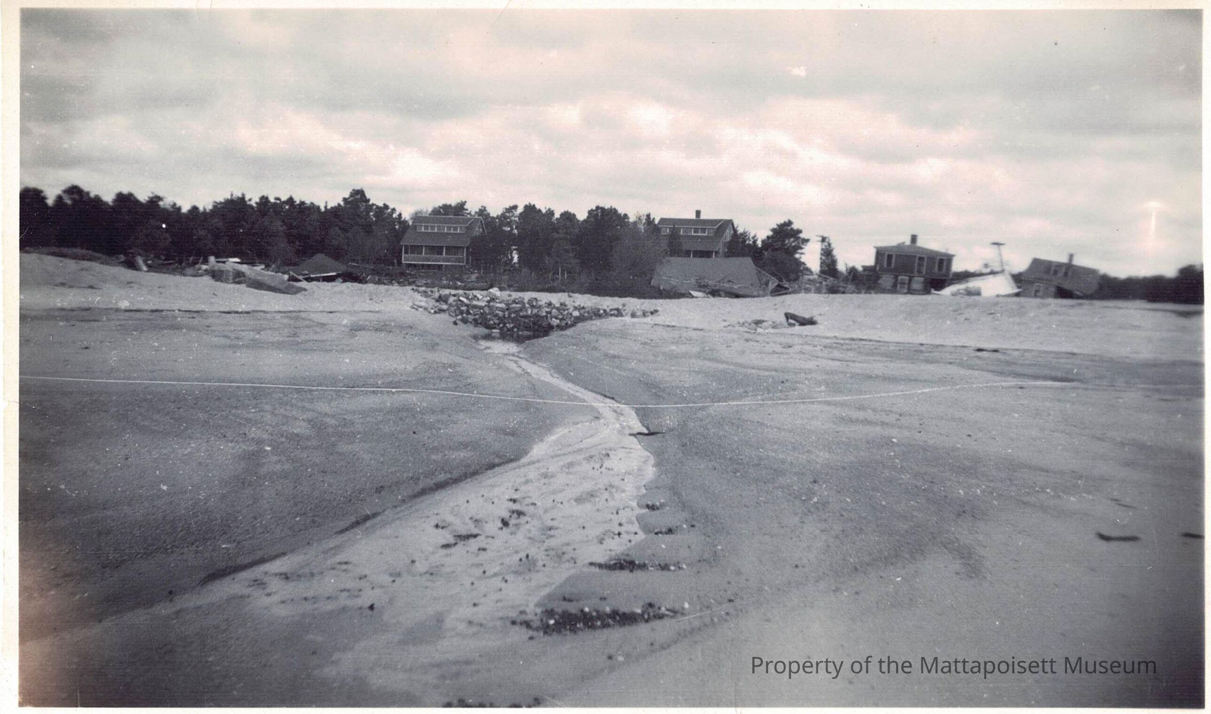 A small B&W photo showing the aftermath of the 1938 hurricane in Mattapoisett.Collection