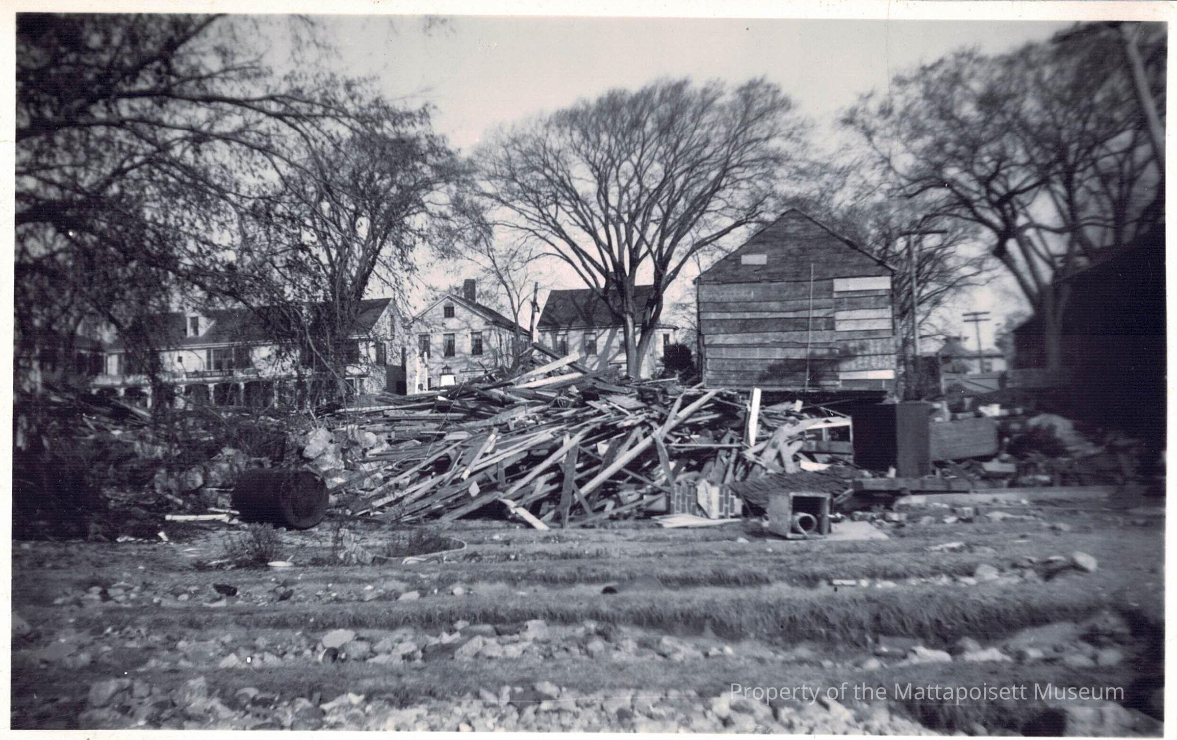 A small B&W photo showing the aftermath of the 1938 hurricane in Mattapoisett.Collection
