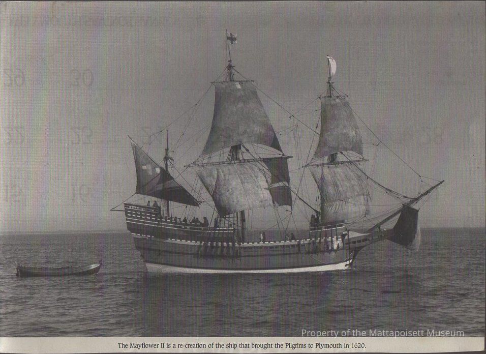 Clipping from scrapbook of Mayflower II, a recreation of the ship that brought the Pilgrims to Plymouth in 1620.Collection