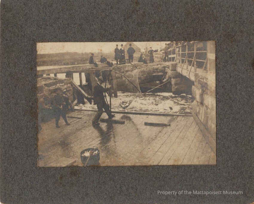 B&W photograph of the Herring Weir on the Mattapoisett River.Collection