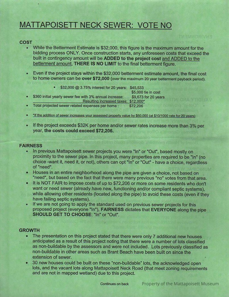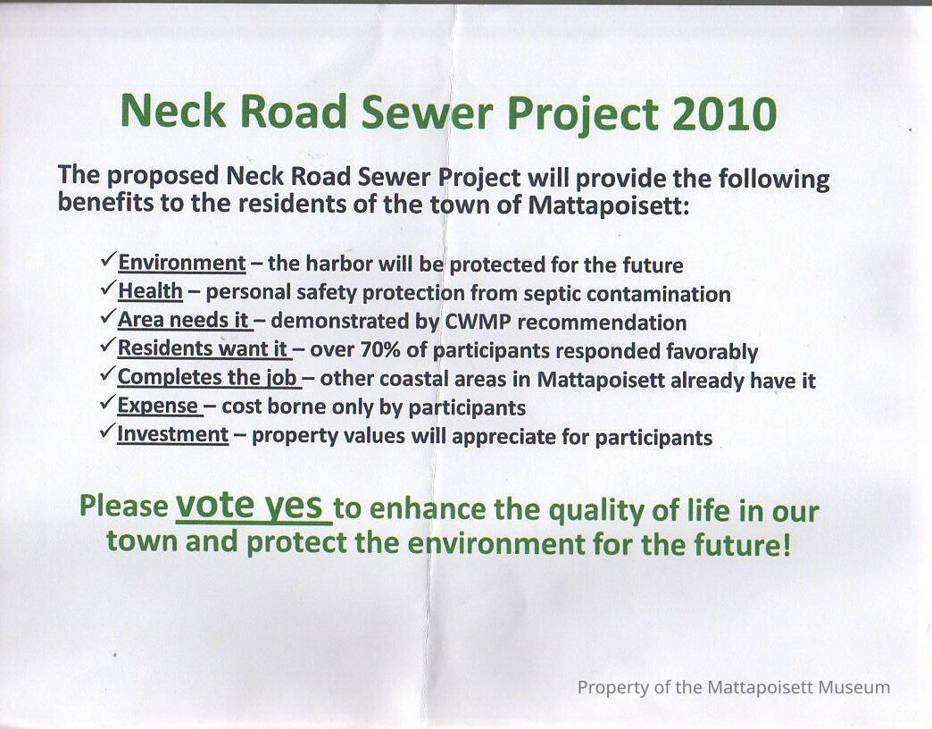 Mattapoisett Neck project, conceptual design map. Documents with reasons for voting yes and no.Collection