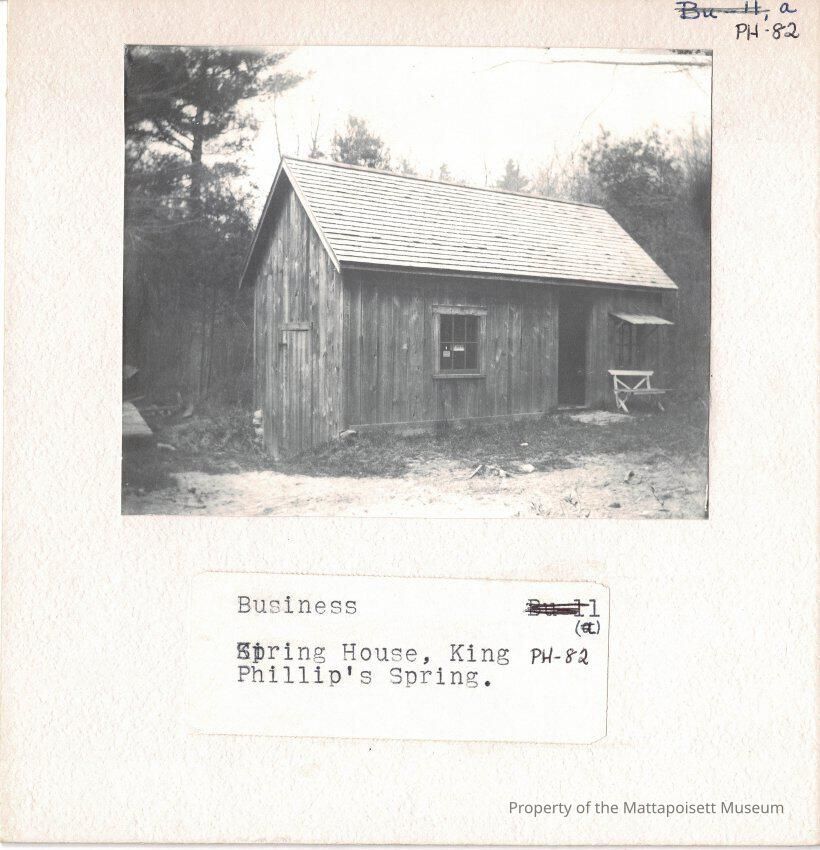 B&W photograph of the spring house at King Phillip's Spring (also known as Crystal Spring).Collection