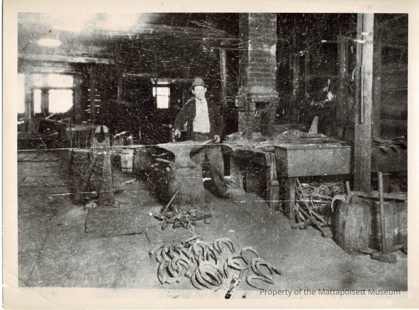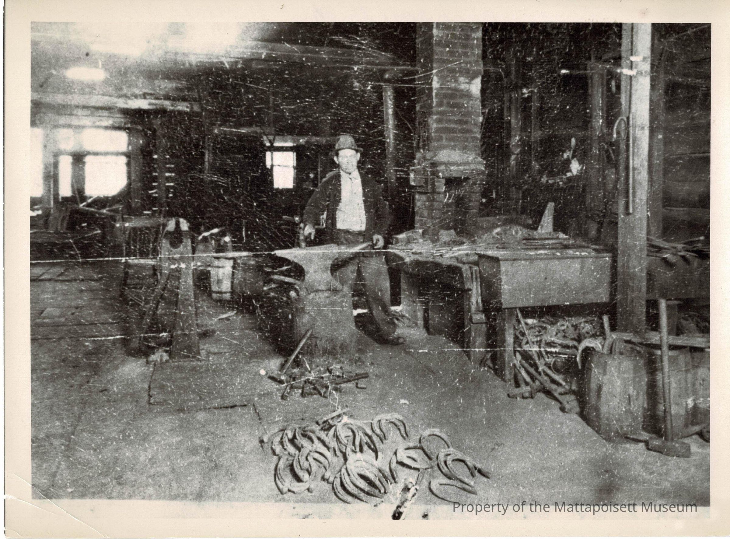 A B&W photo of a blacksmith shop, possibly on Baptist Street.Collection