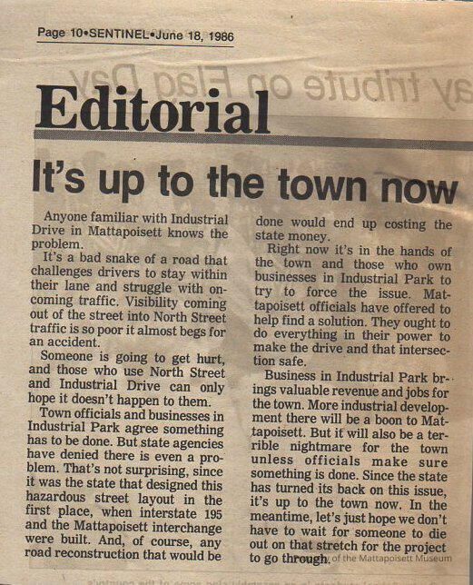 Sentinel editorial "It's up to the town now". Industrial Drive safety.Collection