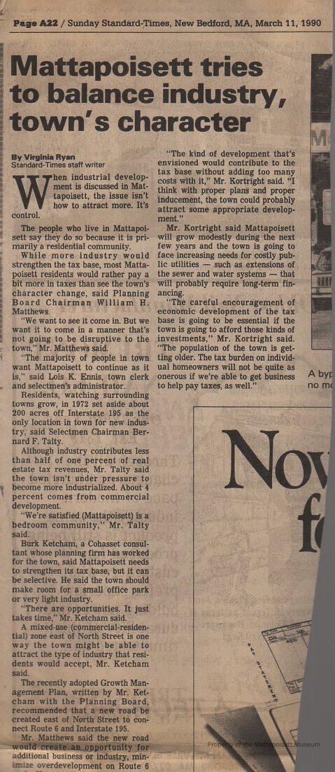 Standard-Times article "Mattapoisett tries to balance industry, town's character".Collection