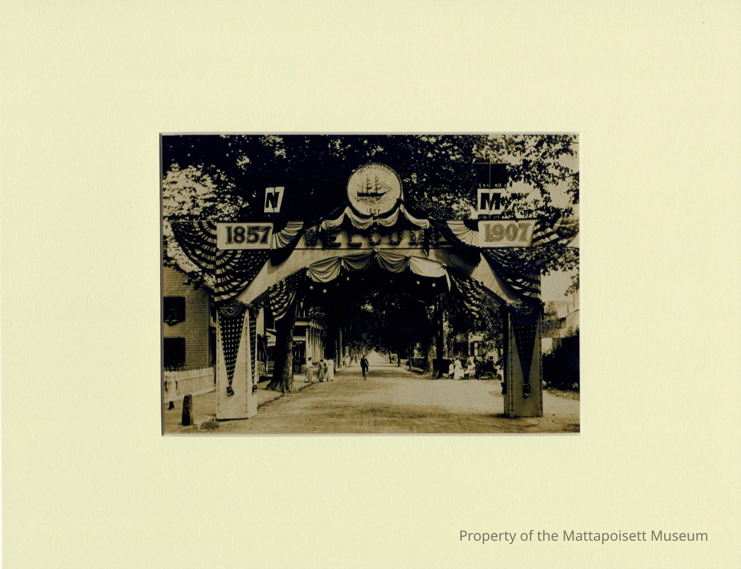 B&W photograph of the celebration held for Mattapoisett's semi-centennial in 1907.