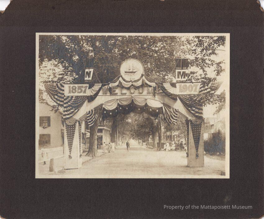 B&W photograph of the celebration held for Mattapoisett's semi-centennial in 1907.