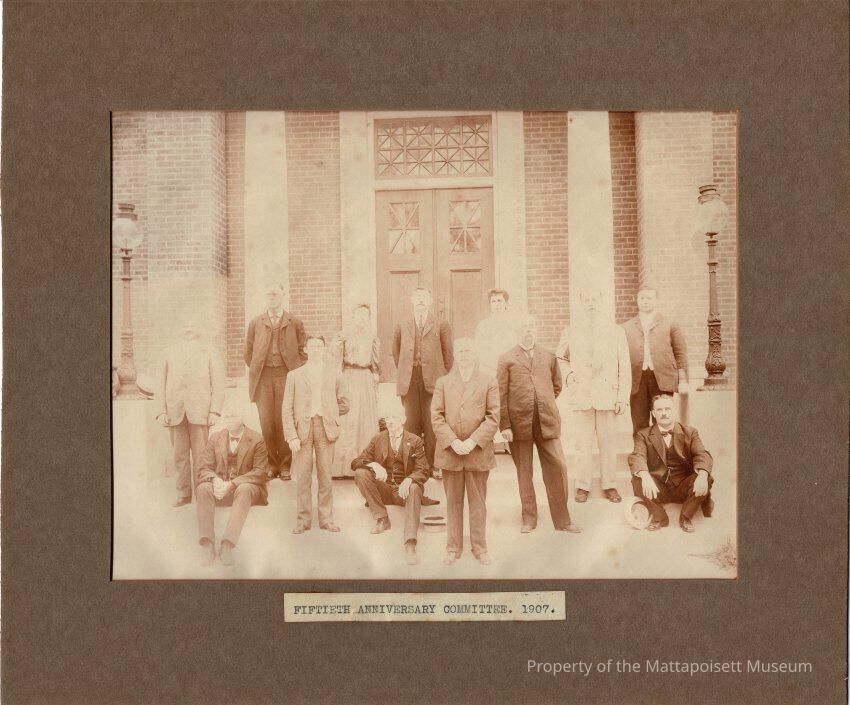 B&W photograph of the celebration held for Mattapoisett's semi-centennial in 1907.