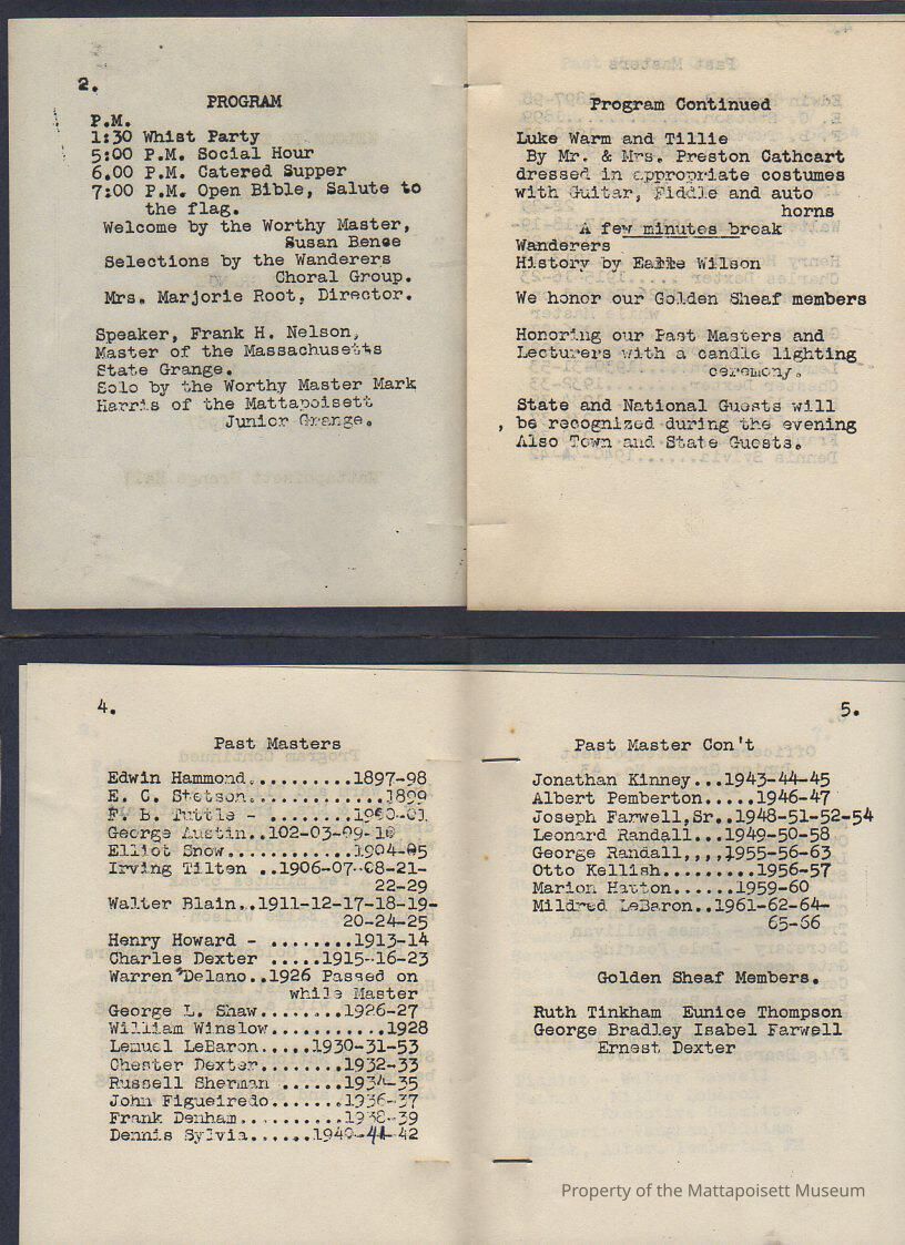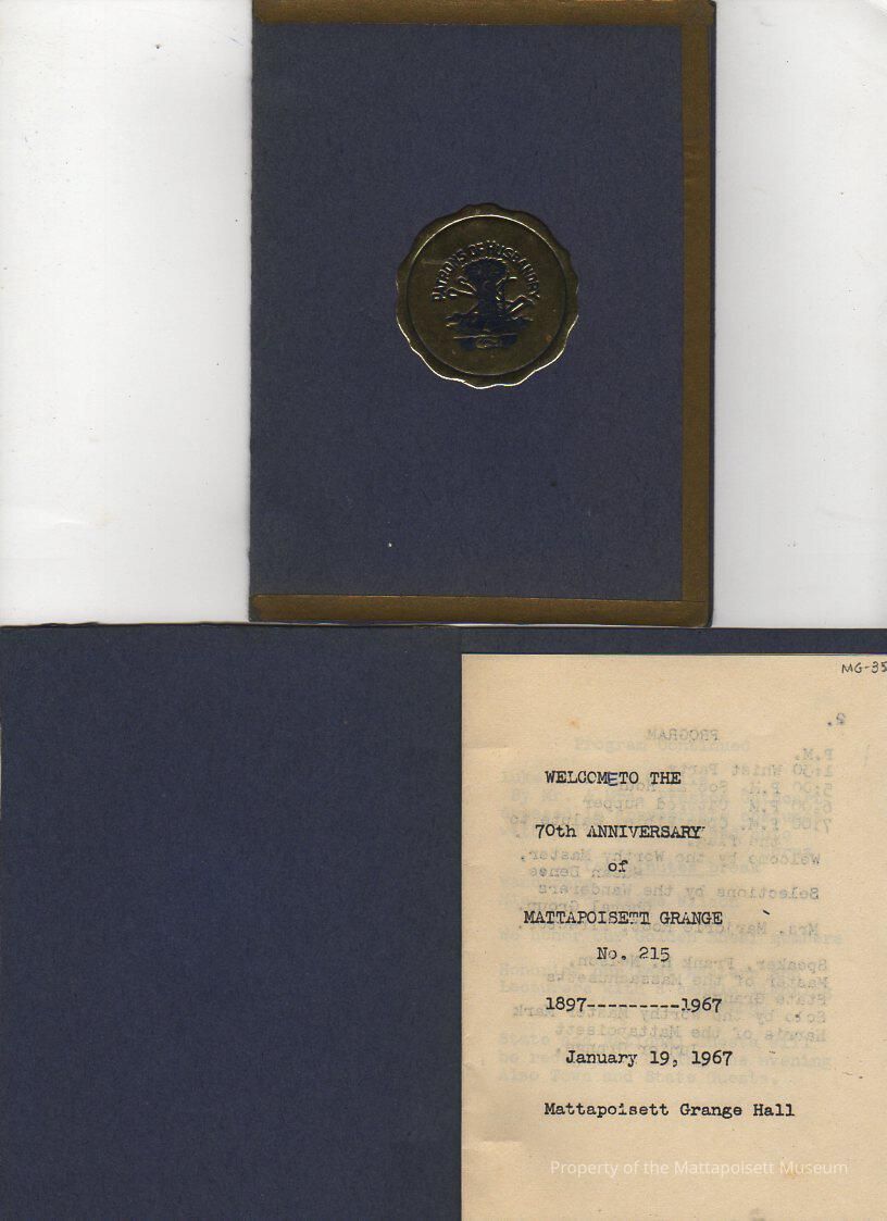 70th Anniversary of Mattapisett Grange, No. 215. 1897-1967, program. Patrons of HusbandryCollection