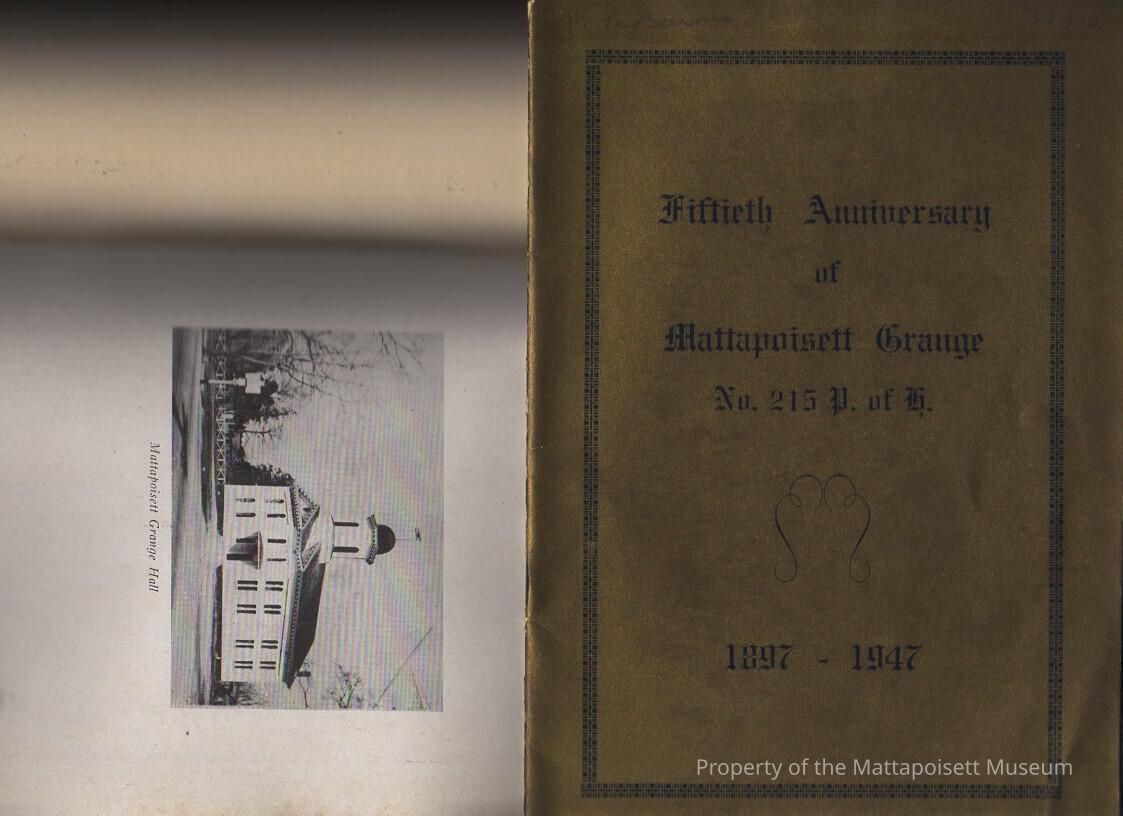 Fiftiety Annivrsary of Mattapoisett Grange No. 215, P of G, 1897-1947. Picture of Grange Hall.Collection