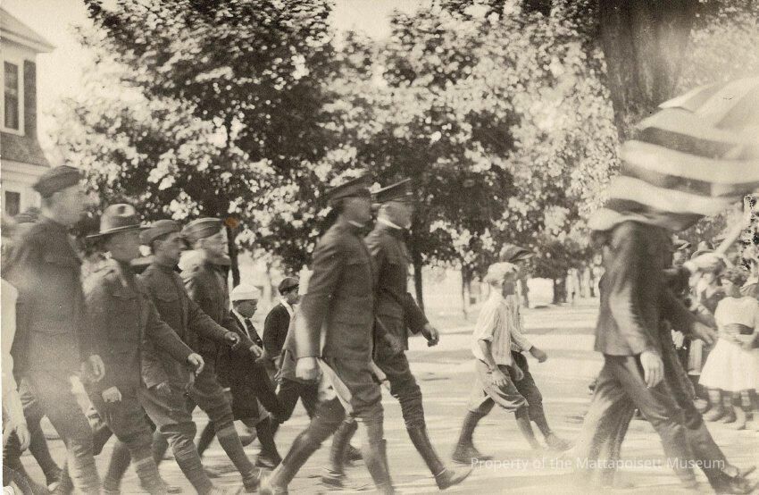 B&W photograph of the celebration held for Mattapoisett's semi-centennial in 1907.