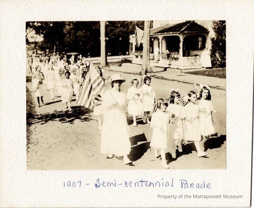 B&W photograph of the celebration held for Mattapoisett's semi-centennial in 1907.