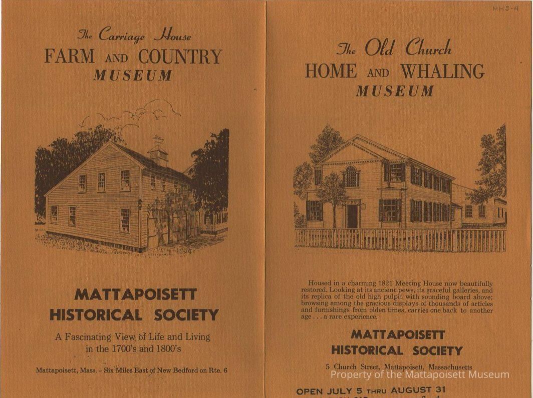 Mattapoisett Historical Society advertising booklet; The Old Church Home and Whaling Museum, The Carriage House Farm and Country Museum.Collection