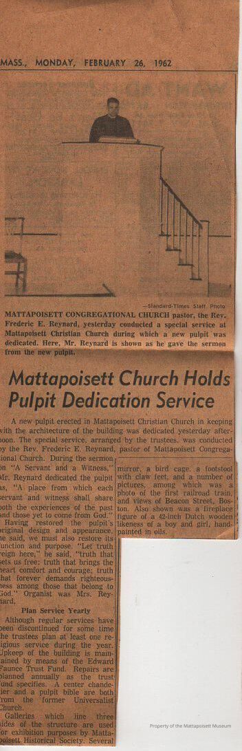 Newspaper article "Mattapoisett Church Holds Pulpit Dedication Service"Collection