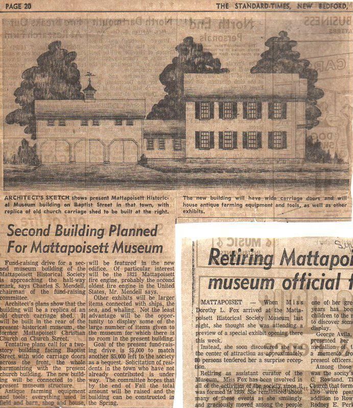 Newspaper article "Second Building Planned for Mattapoisett Museum".Collection