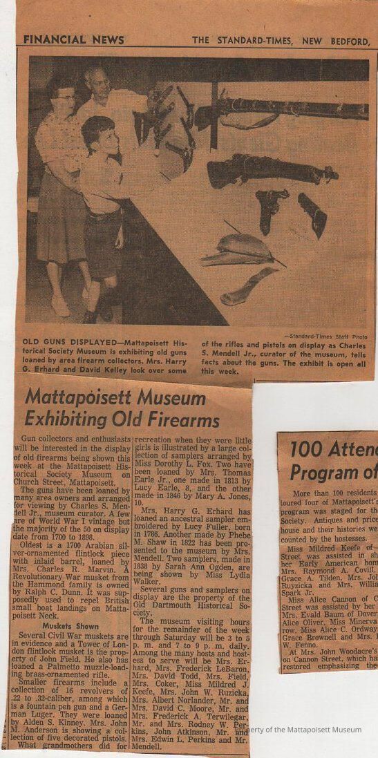 Standard-Times newspaper article "Mattapoisett Museum Exhibiting Old Firearms"Collection
