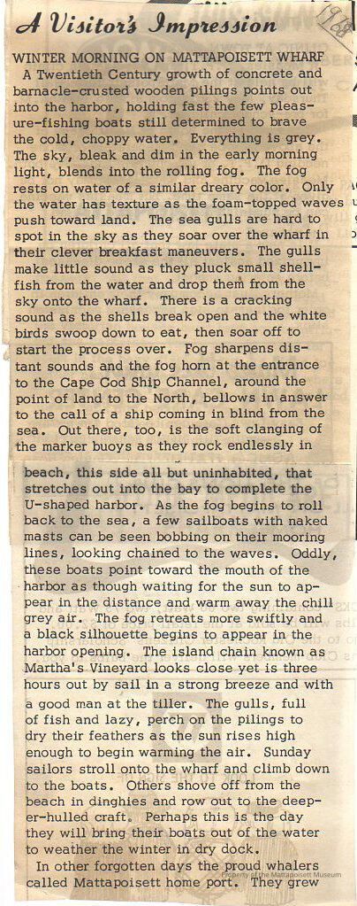 [Presto Press] article "A Visitor's Impression", Winter morning on Mattapoisett Wharf.Collection