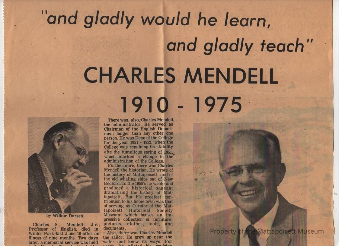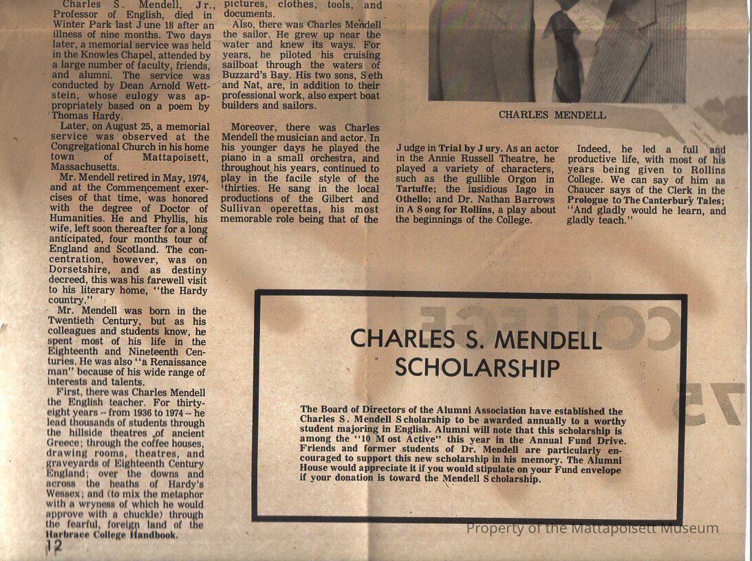 Flyer for Charles Mendell scholarship. "and gladly would he learn, and gladly teach". 1910-1975.Collection
