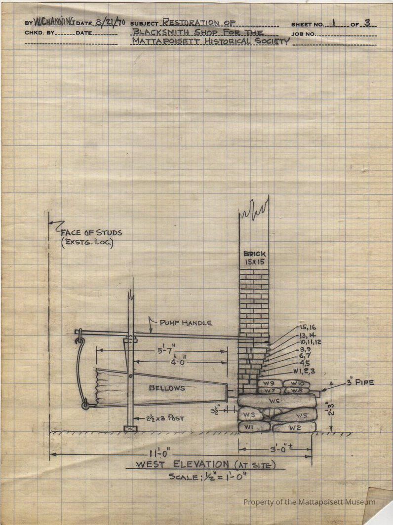 Plans for the restoration of Blacksmith Shop for the Mattapoisett Historical Society by W. Channing.Collection