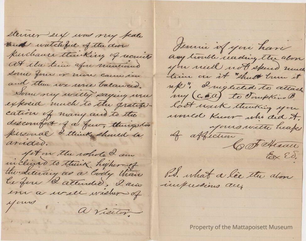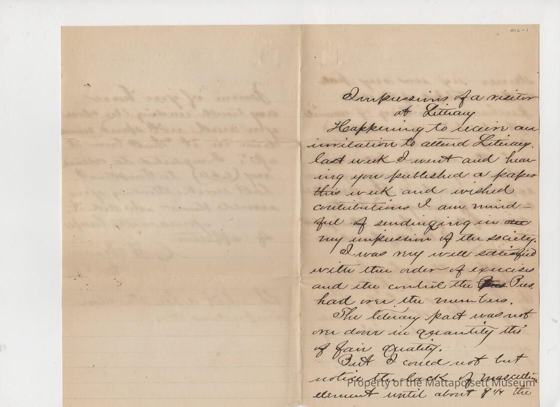 Letter "Impressions of a visitor at Literary", from C. F. Hesau, ex. ed.Collection
