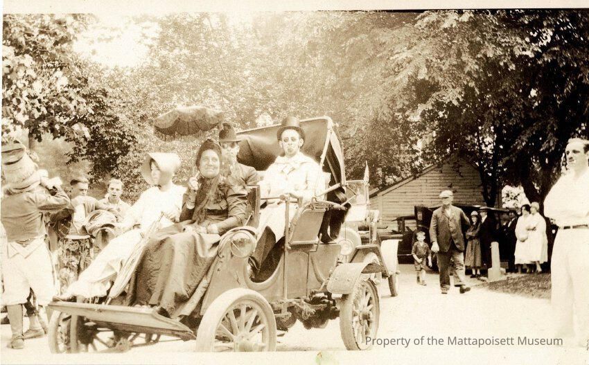 B&W photograph of the celebrations held on the 4th of July, 1928. Left to right: Mary Hammond, Helen Bowman, Walter Bowman, Winfield Jenney.Collection