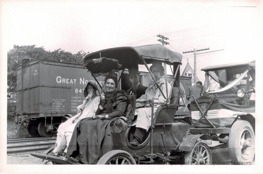 B&W photograph of the celebrations held on the 4th of July, 1928. Left to right: Mary Hammond, Helen Bowman, Walter Bowman, Winfield Jenney.Collection
