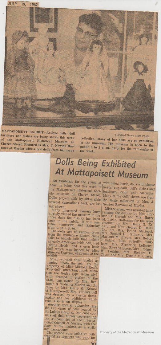 Standard-Times newspaper article "Dolls Being Exhibited At Mattapoisett Museum".Collection