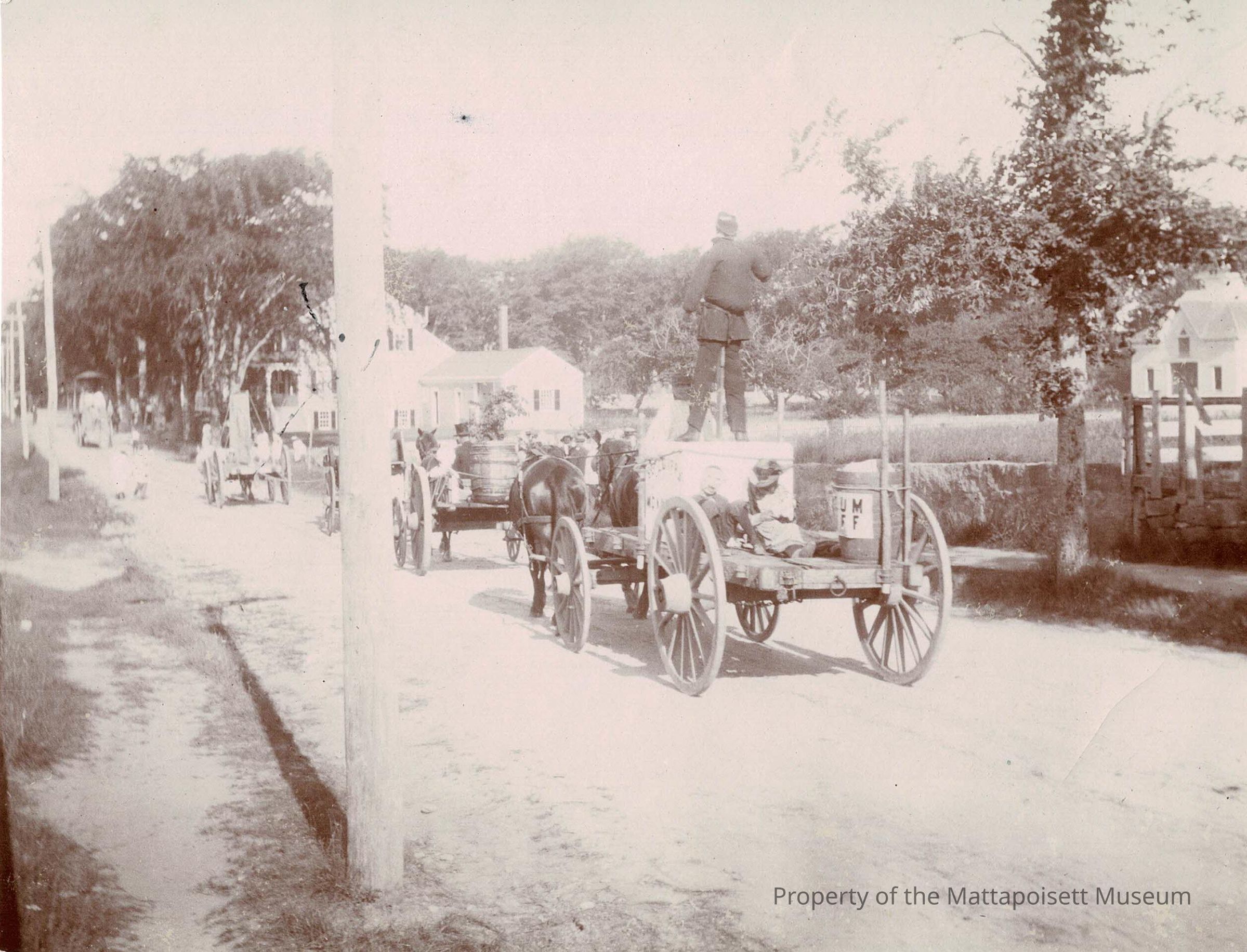 B&W photograph of celebrations in Mattapoisett. Precise date and event is unclear.Collection