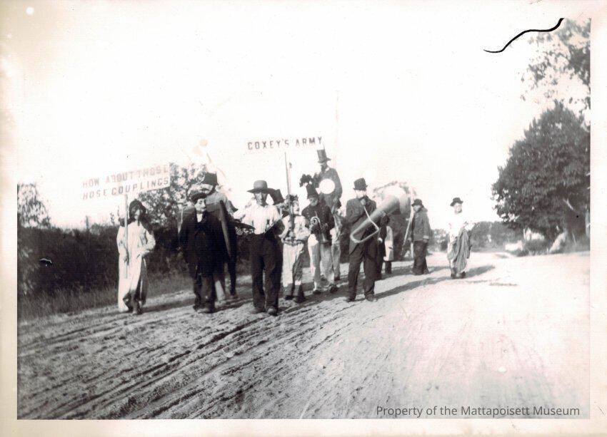 B&W photograph of celebrations in Mattapoisett. Precise date and event is unclear.Collection