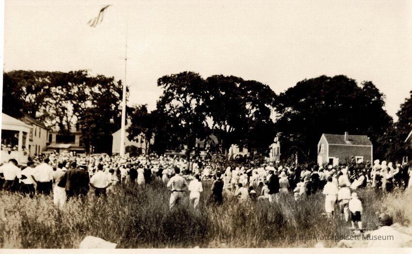 B&W photograph of celebrations in Mattapoisett. Precise date and event is unclear.Collection