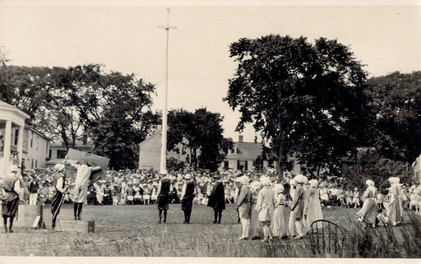 B&W photograph of celebrations in Mattapoisett. Precise date and event is unclear.Collection