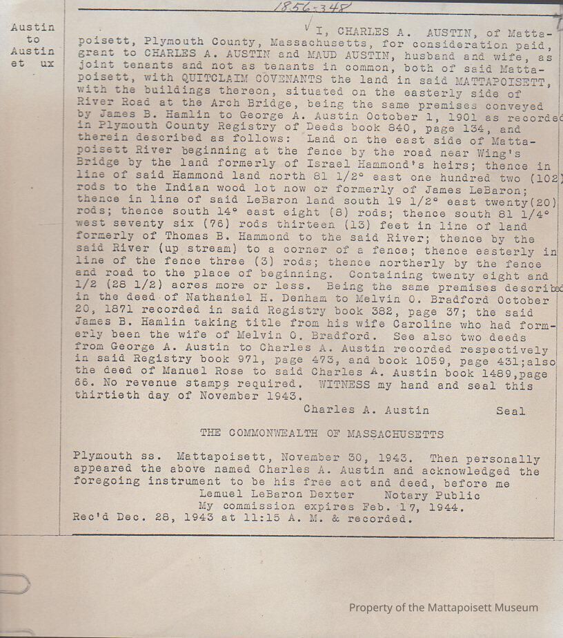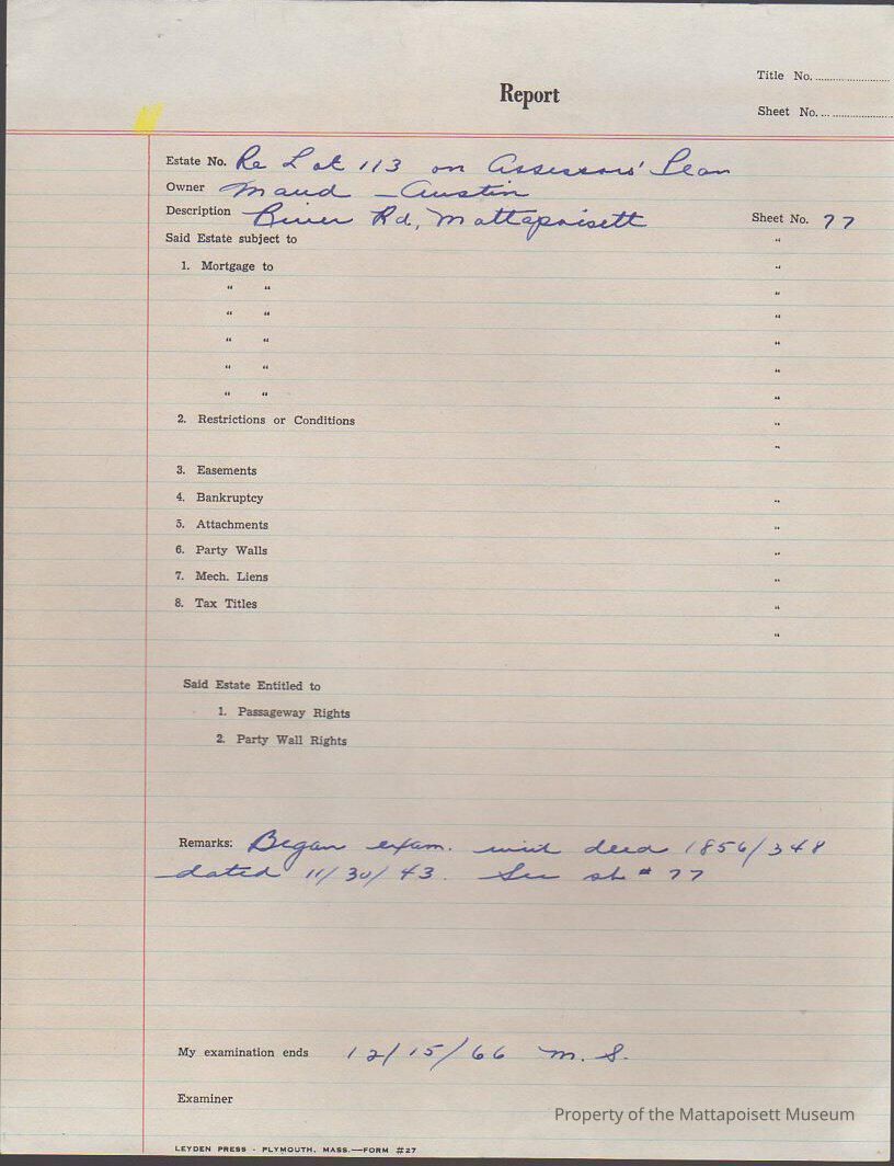 Plan of land, Lot 113 on Assessor's plan, on River Road in Mattapoisett, Mass. surveyed for Maud L. Austin, May 1965Collection