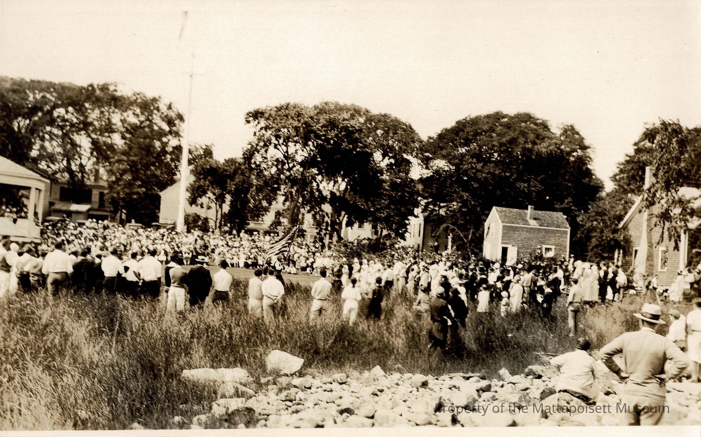B&W photograph of celebrations in Mattapoisett. Precise date and event is unclear.Collection