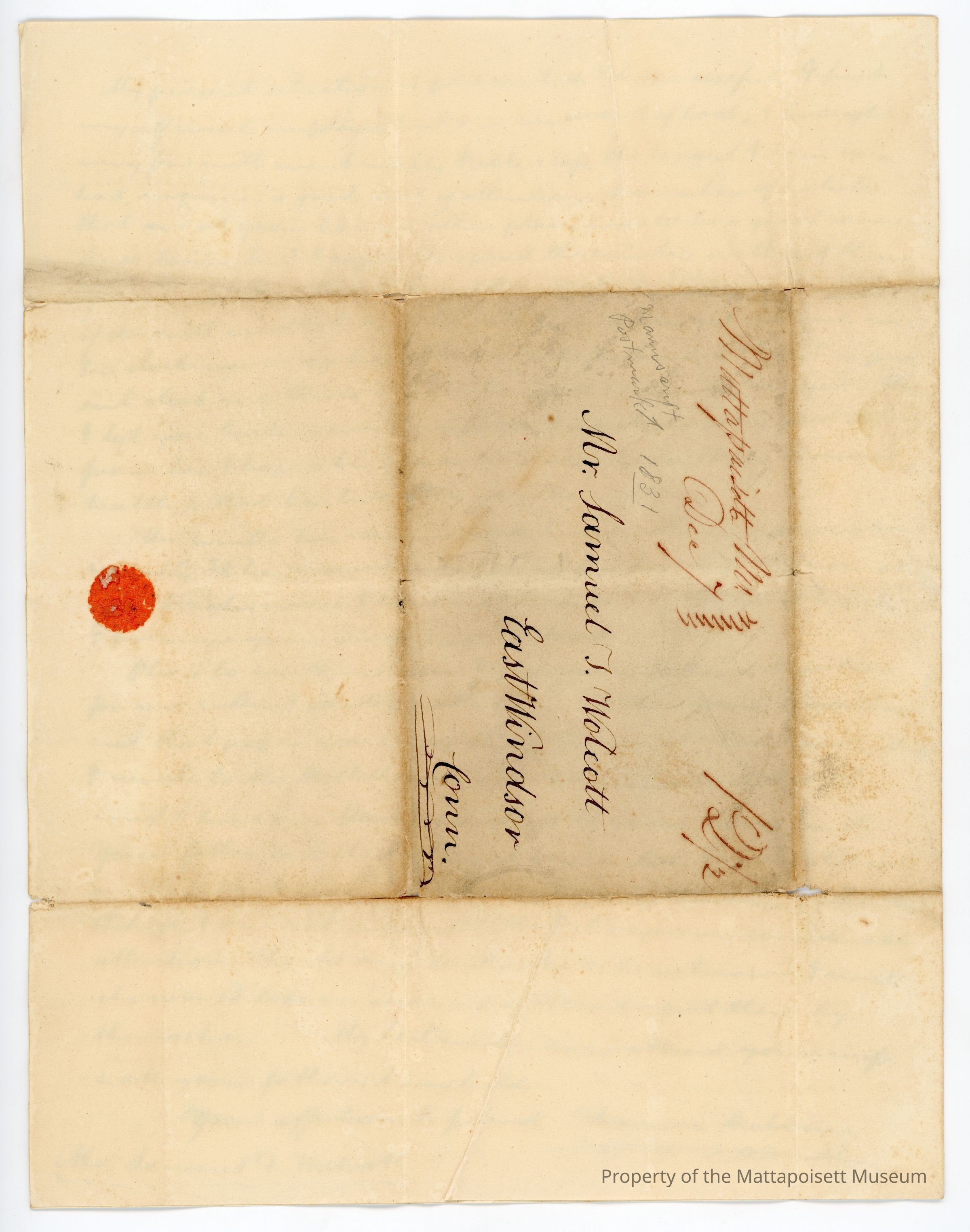 9 letters regarding Mattapoisett or Rochester collected by Brad Hathaway from various sources. Letters 1-6 were written by Thomas Robbins and addressed to Samuel Wolcott from 1831-1835. Letter 7 was written by Thomas Robbins and addressed to Major Abial Wolcott in 1839. Letter 8 was written by Alanson St. Blair and addressed to Gen. S Moore in 1833. Letter 9 was written by Larnet Hall and addressed to Job Chase Jr. in 1818.Collection