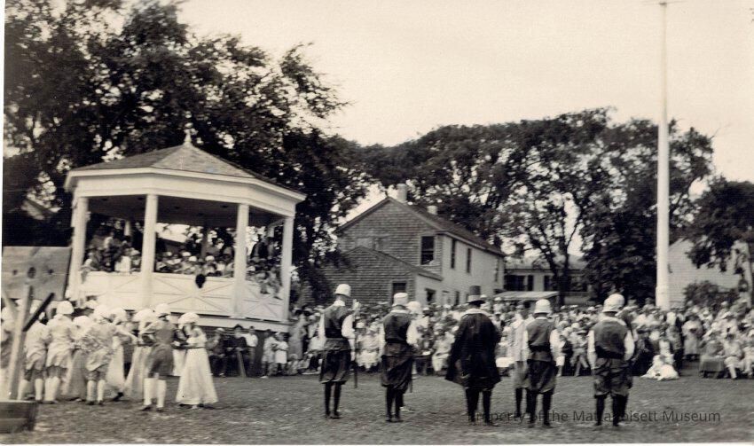 B&W photograph of celebrations in Mattapoisett. Precise date and event is unclear.Collection