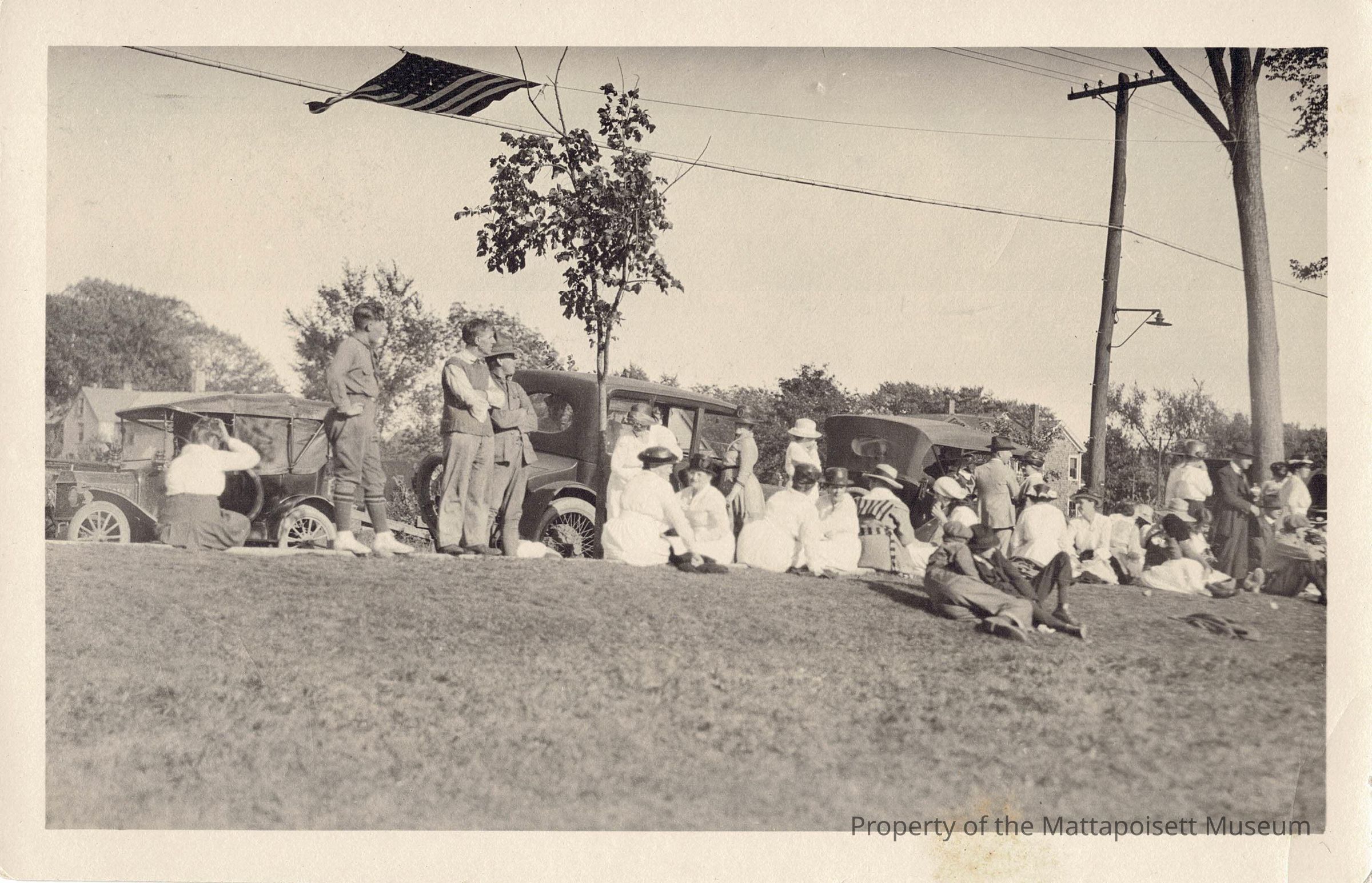 B&W photograph of celebrations in Mattapoisett. Precise date and event is unclear.Collection