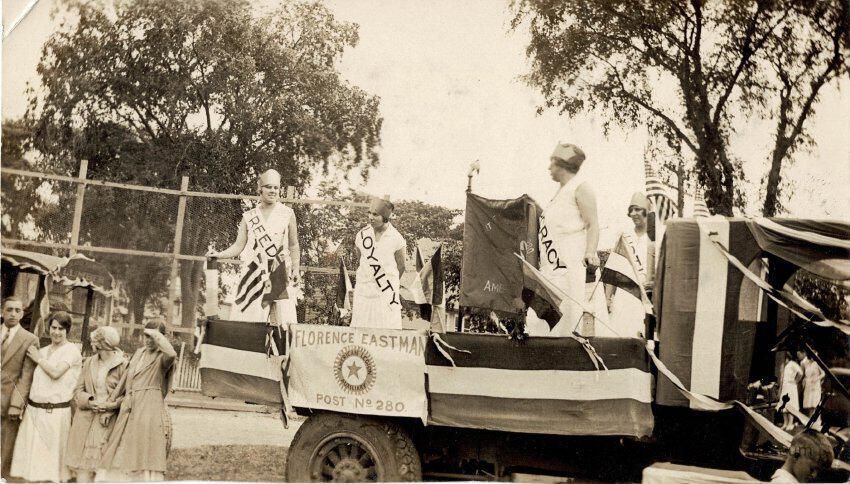 B&W photograph of celebrations in Mattapoisett. Precise date and event is unclear.Collection